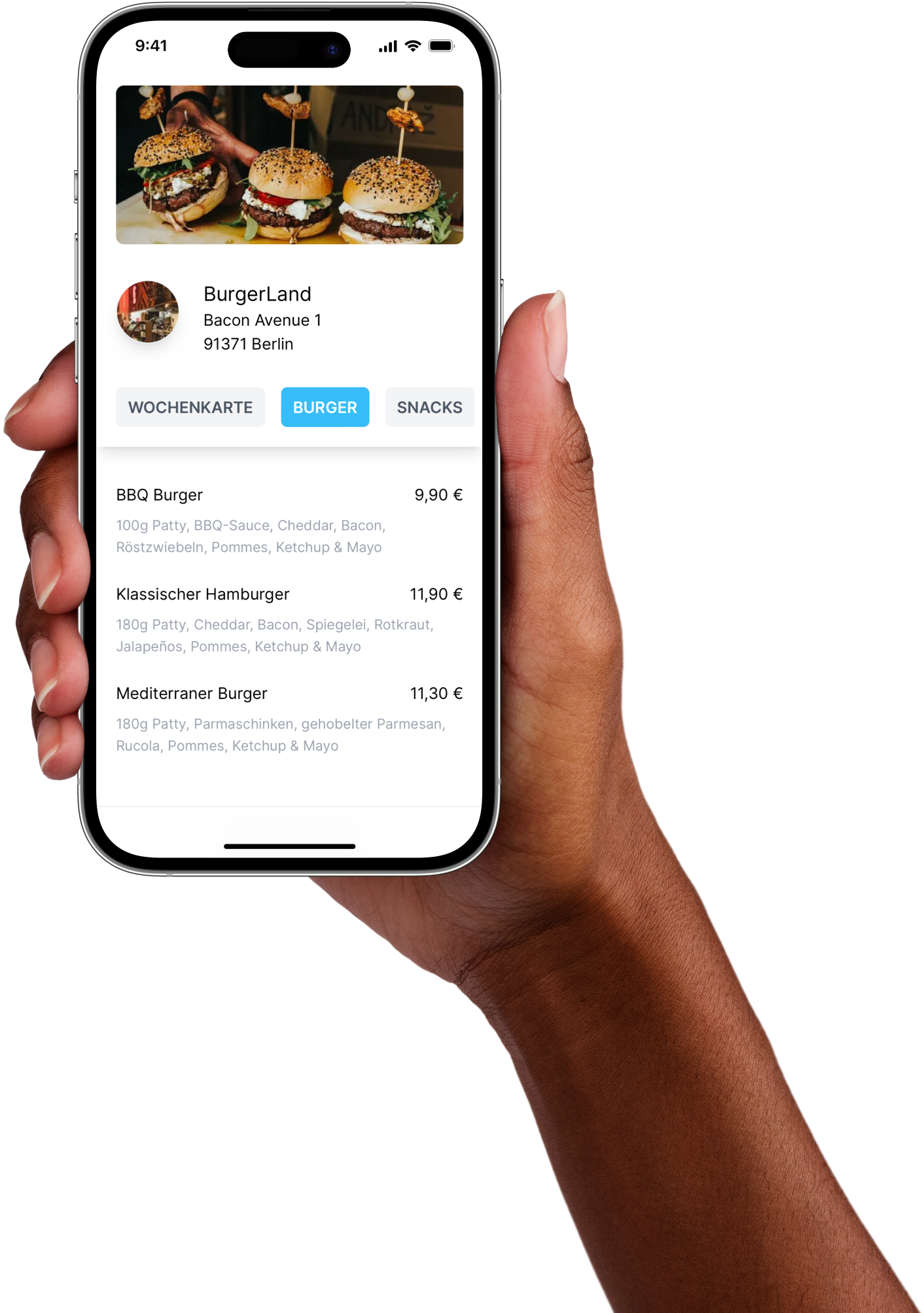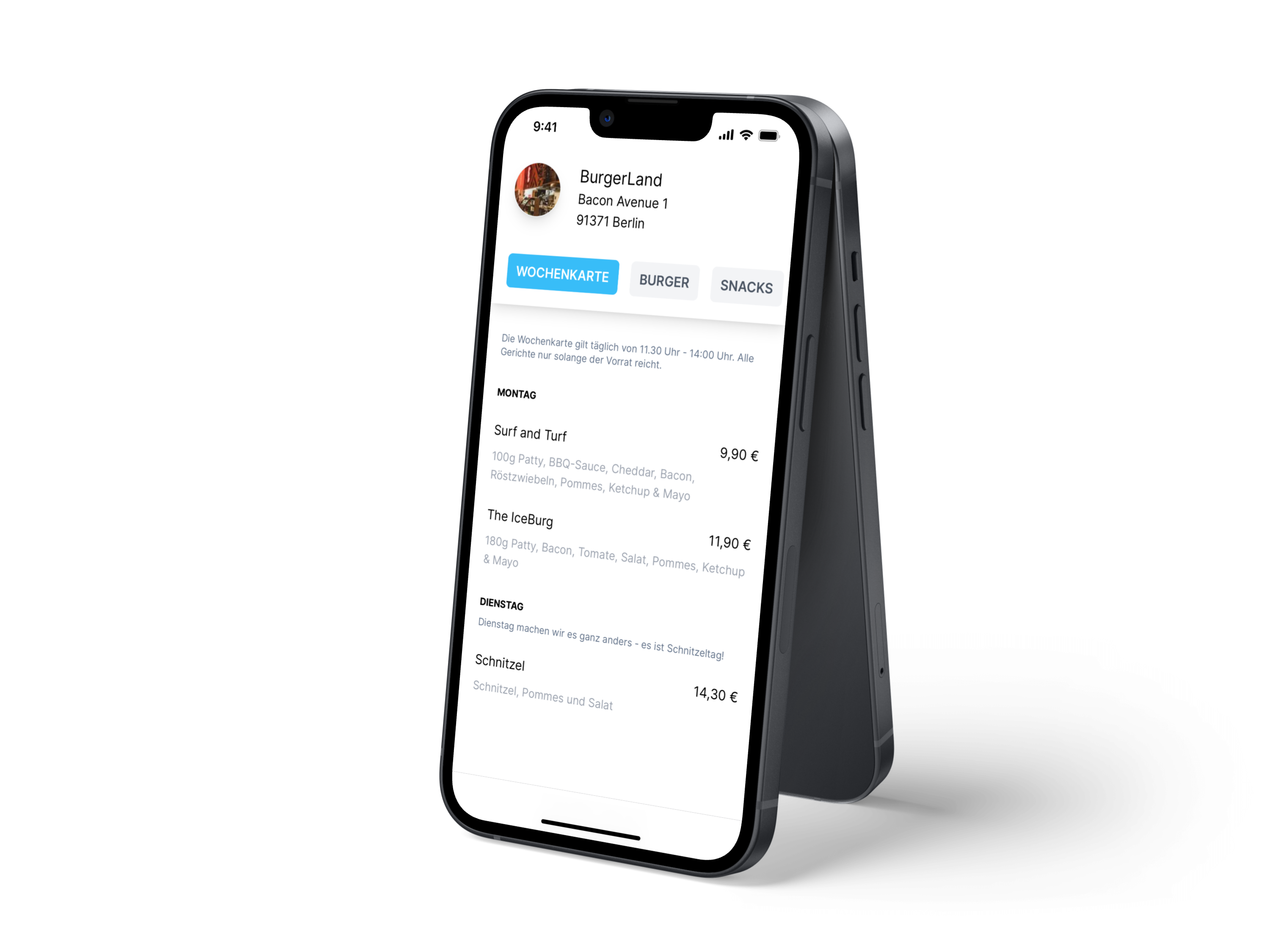 Die Aktualisierung Ihres Menüs ist ein Kinderspiel. Sie können Gerichte, Preise und Beschreibungen in Echtzeit ändern. Klicken Sie einfach auf die entsprechenden Elemente und speichern Sie die Änderungen – Ihre Speisekarte wird sofort aktualisiert.